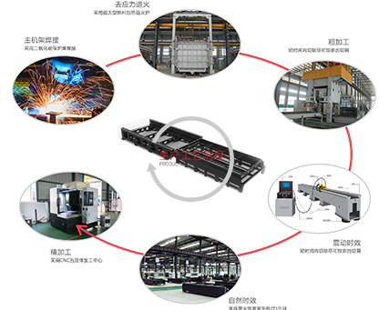 兩次時(shí)效處理,確保床體長(zhǎng)期運(yùn)動(dòng)的精度和穩(wěn)定性,剛性好,能接受較高的加速度;主床身采用鋼結(jié)構(gòu)精密焊接、應(yīng)力失效處理,導(dǎo)軌座位大型龍門(mén)統(tǒng)一刀加工的重型機(jī)架結(jié)構(gòu)。